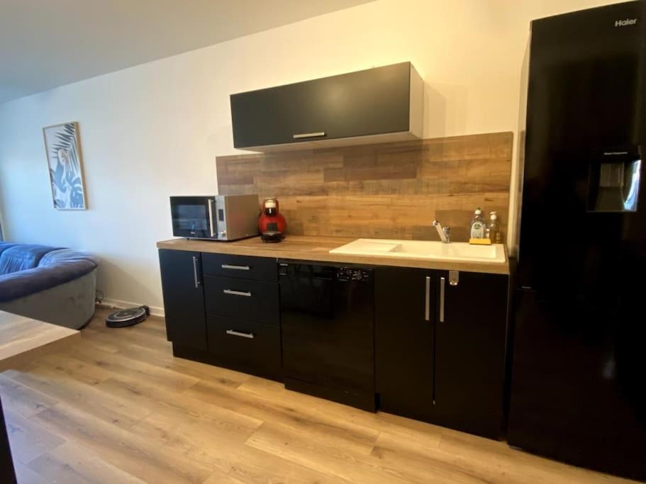La cuisine est entièrement équipée d’un grand réfrigérateur/congélateur, d’un lave-vaisselle, d’un four microonde, d’une cafetière, d’un grille-pain, une bouilloire …