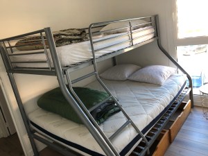 Les chambres avec rangements ont des matelas et des oreillers à mémoire de forme, la chambre parentale possède une télévision.